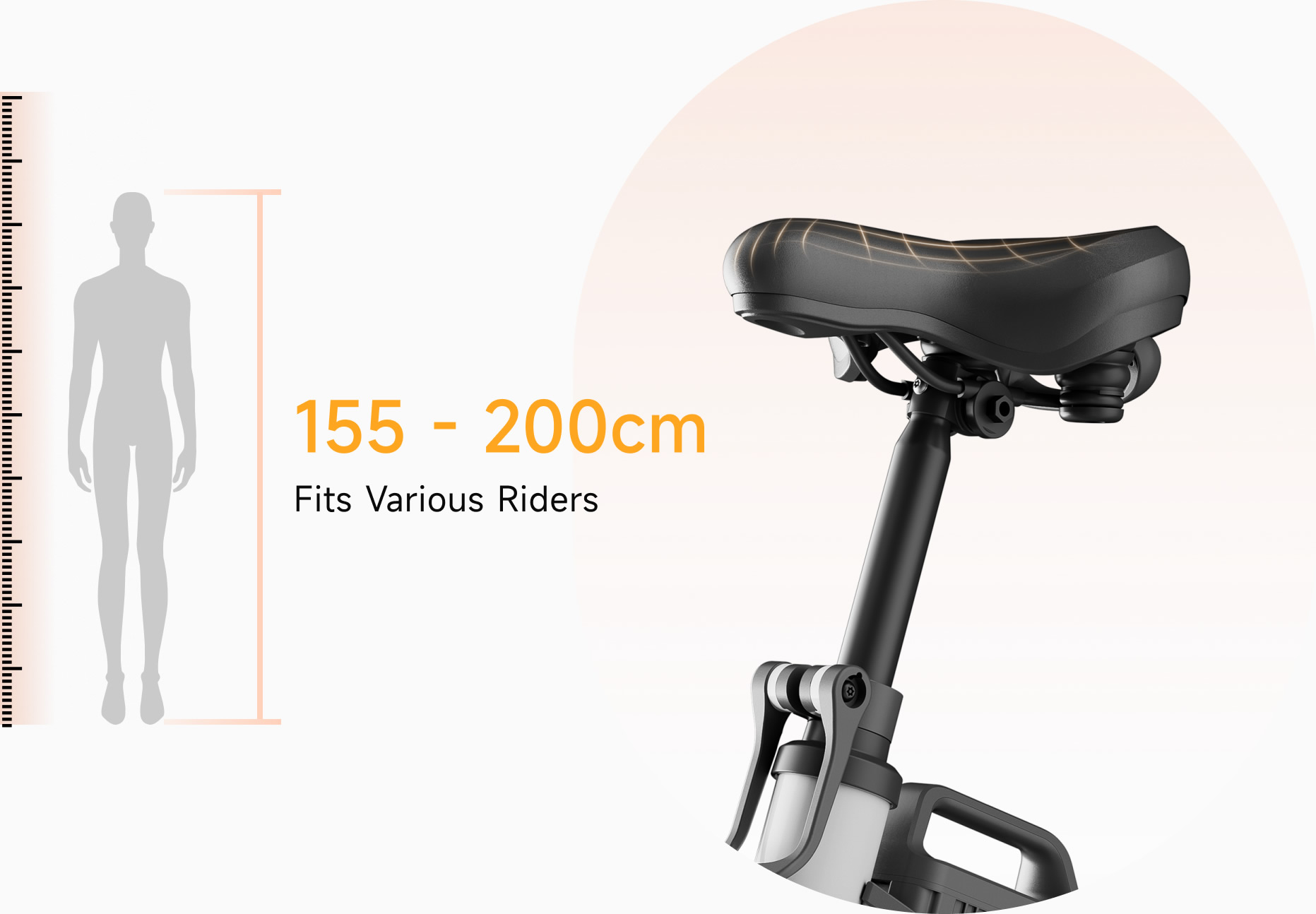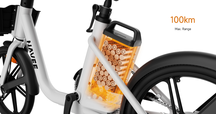 An adjustable PU seat with ergonomic contours ensures optimal comfort. The seat height accommodates riders from 155cm to 200cm, catering to a wide range of users and enabling long-distance rides with ease.